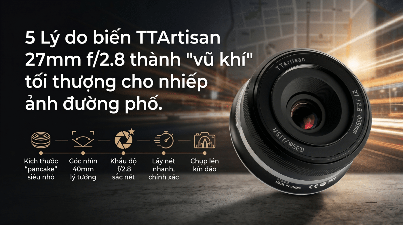 Bài viết này được xây dựng dựa trên trải nghiệm thực tế từ TTArtisan Việt Nam, phân tích kỹ thuật và góc nhìn chuyên môn nhằm giúp bạn hiểu rõ vì sao TTArtisan 27mm lại được xem là một trong những lựa chọn đáng giá nhất cho nhiếp ảnh đường phố hiện nay.